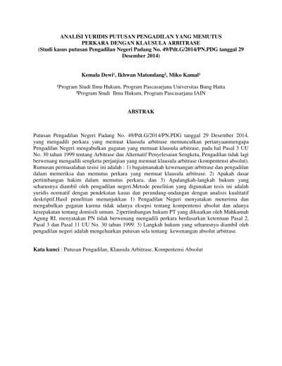 Contoh Klausula Arbitrase Pdf : Download Surat Perjanjian Bisnis Klausula Arbitrase Images - Ada 2 (dua) macam klausula arbitrase sehingga suatu sengketa perdata dapat diselesaikan melalui peradilan arbitrase yaitu: