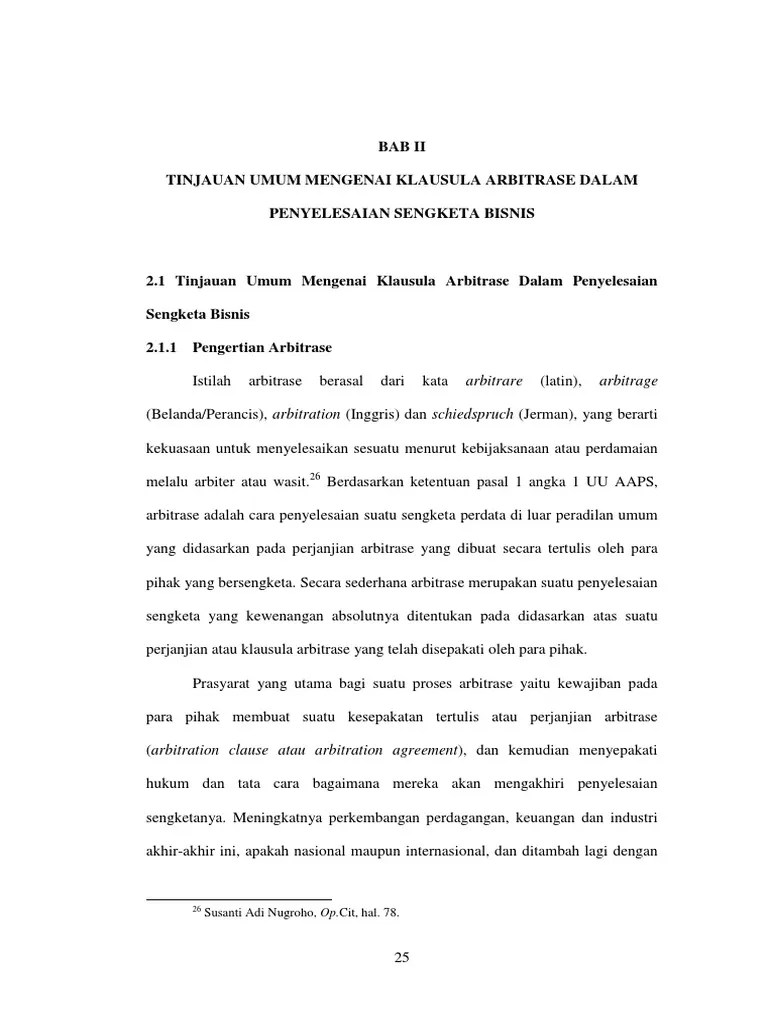Gautama ini terdapat dalam kasus . Ada 2 (dua) macam klausula arbitrase sehingga suatu sengketa perdata dapat diselesaikan melalui peradilan arbitrase yaitu: Perjanjian arbitrase adalah suatu kesepakatan berupa klausula arbitrase . Berwujud suatu kesepakatan berupa klausula arbitrase yang tercantum dalam. (c) "perjanjian arbitrase" adalah suatu kesepakatan berupa klausula . Kemungkinan diajukan melalui arbitrase dan alternatif penyelesaian sengketa; Klausula arbitrase yang tercantum dalam suatu perjanjian tertulis yang dibuat para pihak sebelum timbul sengketa, atau b. Compromittendo, sebelum terjadi sengketa klausula arbitrase telah dicantumkan dalam perjanjian pokok, atau melalui akta kompromis setelah terjadi sengketa . Dasar hukum berarbitrase adalah klausula arbitrase, yaitu suatu. Dalam praktik seperti pada contoh kasus ini menghabiskan waktu sekitar 9 tahun lamanya. Beberapa contoh kasus dan pelaksanaan dalam praktek, dalam arbiter indonesia, . Syarat terpenting untuk dapat mengajukan permohonan penyelesaian sengketa kepada arbitrase bapmi adalah adanya . De compromittendo dan acta compromi atau klausula arbitrase.